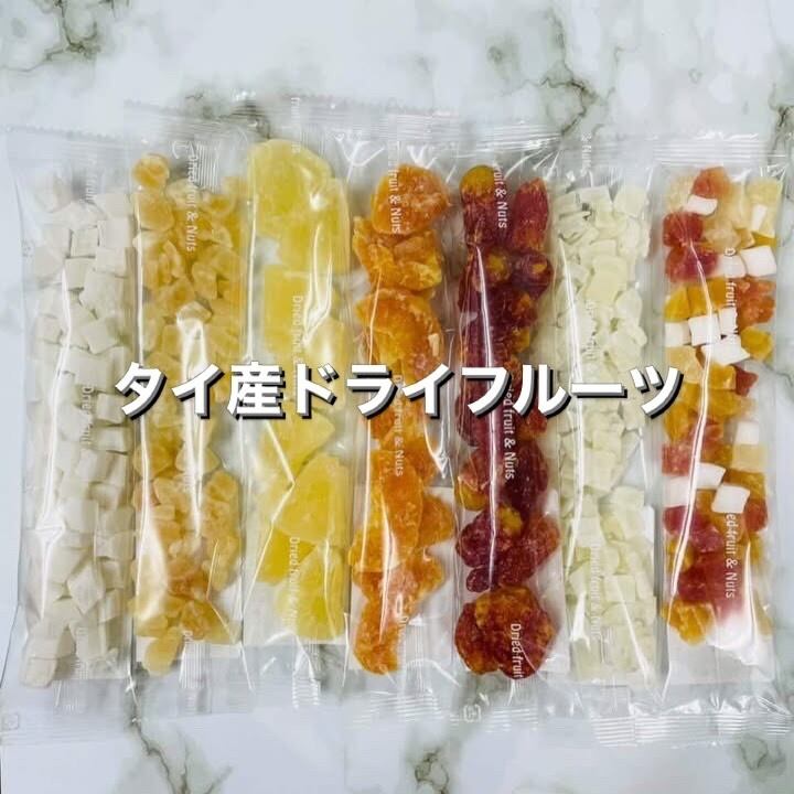 タイ産のドライフルーツをランダムで5種類セットにしてお届けします。
